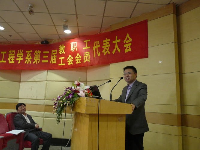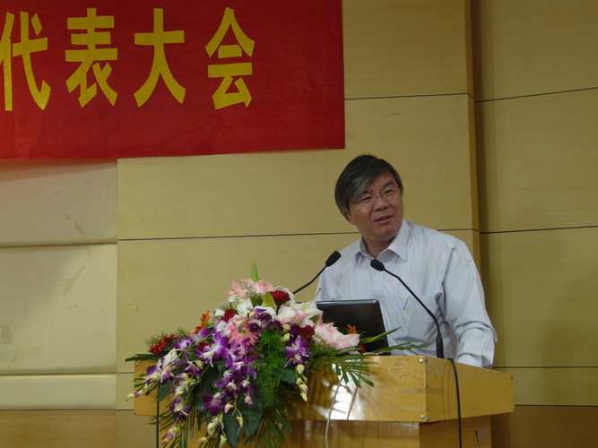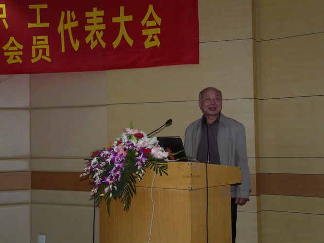 杜丕一教授代表新一届系工会发言,他首先感谢各位代表对当选委员的信任,并号召全体委员统一思想,全心全意为广大教职员工服务,不辜负大家的信任,努力开创工会工作新局面。