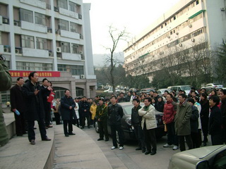演习开始之前,大家首先在大楼前集中,材料系系主任叶志镇教授发表了“安全第一,生命最重要”的讲话。校保卫处王老师给大家讲解了灭火器的使用方法、火灾报警注意点以及逃生过程中的注意事项。
