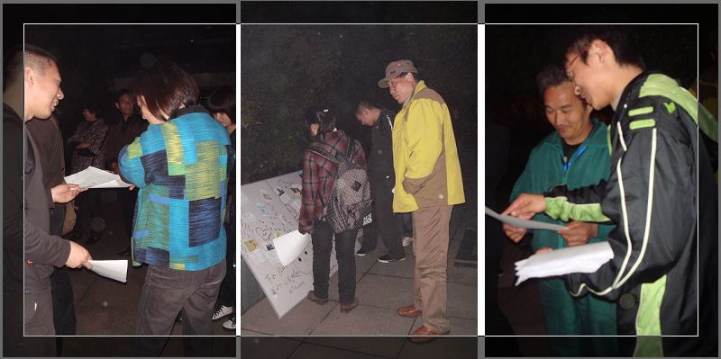 当志愿者们就把之前准备好的三块展板也摆放好时已是晚上6点左右,虽然光线不太好,一些刚吃完晚饭的住户下楼散步看到我们的宣传,还是停下了脚步仔细看展板上的照片和资料,向志愿者们询问有关一些问题,志愿者们也都认真详细地回答了他们。