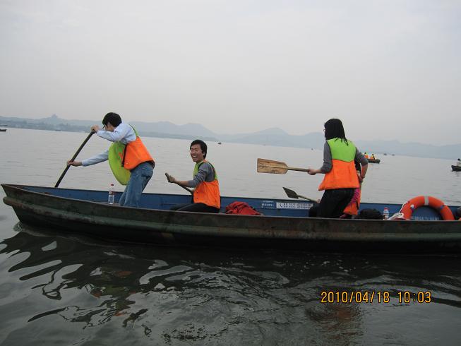 此次比赛是在美丽的西湖,分四个小组进行的。在比赛中,各小组齐心协力、团结一致,在一种欢乐愉悦的氛围中完成了比赛。