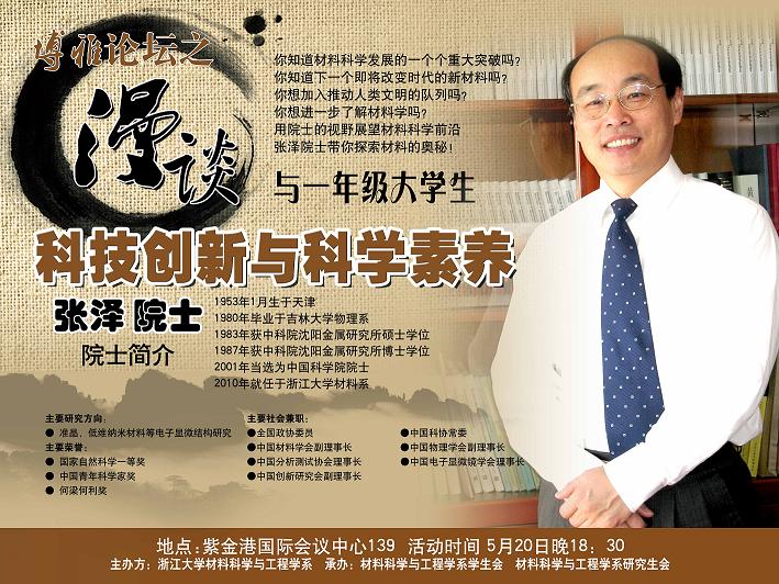 材料系名师导航之张泽院士讲座期待您的参与