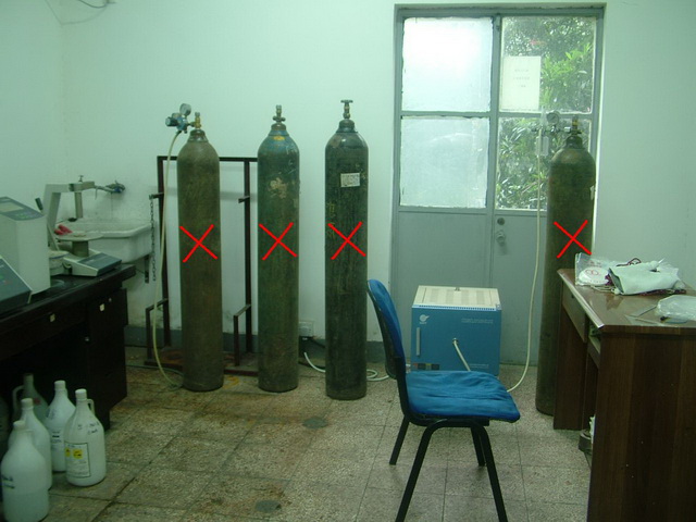 钢瓶未固定;