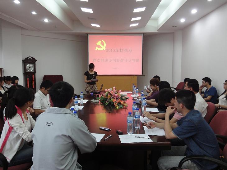 为认真学习贯彻党的十七届四中全会精神,大力加强基层党组织建设,巩固和发展深入学习实践科学发展观活动成果,更好地总结近年来我校党建工作的好做法、好经验,充分发挥党支部的战斗堡垒作用和党员的先锋模范作用,按照《中共浙江省委教育工委办公室关于在全省高校开展第四轮支部建设创新活动的通知》精神,我系近期开展了以“科学发展创一流、凝心聚力促和谐”为主题的“党支部建设创新奖”评比活动。全系广大党支部按照要求,认真总结2007年以来开展的支部创新活动和做法,共向上报了16项党支部活动参评“党支部建设创新活动”创新奖。通过第一轮的审核,挑选出了五支表现突出、作风典型的党支部参加第二轮现场答辩评比环节。
