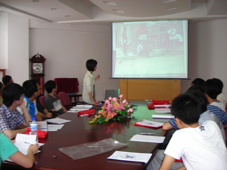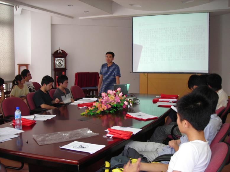 图三 2009年暑期社会实践优秀团队代表许暄河展示交流