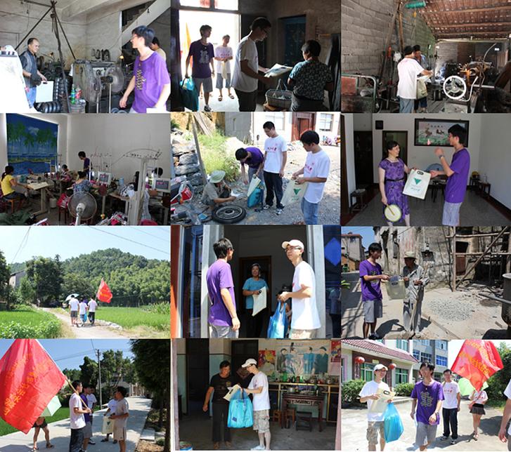 尽管还是上午,但早已烈日当头,队员们在村里几个显眼的宣传栏里张贴低碳环保主题海报,以前村子里宣传低碳主题力度不够甚至几乎没有。宣传海报贴出后,村民就围观上来,队员们也悉心地给村民们讲解低碳理念:从能源危机到环境隐患,从生产交通工具到日常家用电器,队员们生动形象地解释给村民节约能源,低碳环保要靠日常的点滴节约,点滴积累。张贴完海报后,队员们不顾天气的炎热,马不停蹄地走入家家户户,给村民们送上环保袋,并且送上利用学校实验室一些单面打印过的废弃纸张打印的低碳主题宣传单。