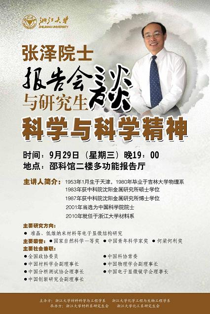 研究生始业教育之张泽院士报告会――与研究生谈“科学与科学精神”