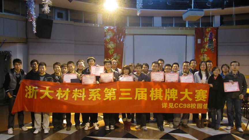 经过一下午的预赛,晋级名单最终确立。而最后的决赛是在晚上,各位选手经过激烈的角逐最终由张仕均、徐岭茂获得升级冠军,杨飞获得斗地主冠军,单翔、郝亦舟(和棋)并列为五子棋冠军,郭兴泽获得象棋冠军,裁判队获得三国杀冠军。随后进行了颁奖典礼,各个项目的前三名都获得了丰厚的奖品,比赛在快乐的氛围中结束。大家经过这场比赛,从中获得了乐趣,增进了彼此间的友谊,同时也丰富了研究生的课余生活。