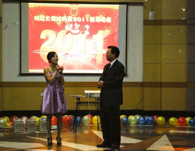 最后,在主持人的带领下,在场所有师生一起以气球的爆破声为礼花庆祝新年的到来,祝愿2011年材料系再创辉煌。