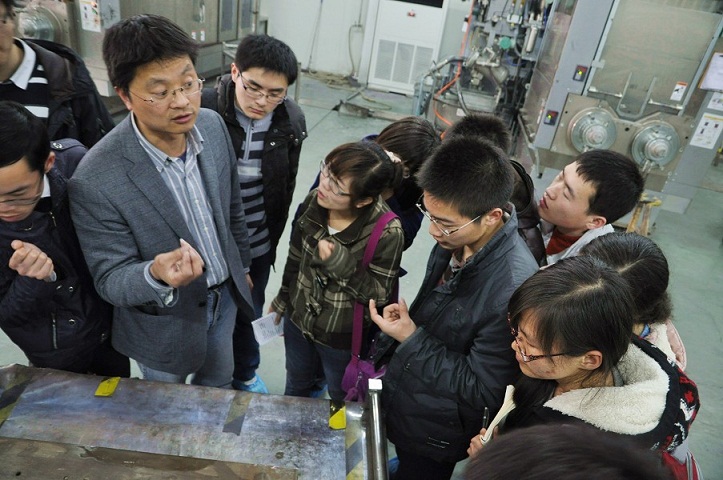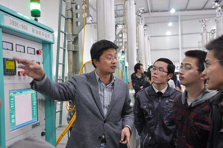 钟工程师首先带领同学们走进了铸造多晶硅和直拉单晶硅生产车间。他深入浅出的讲解使同学们对铸造多晶硅和直拉单晶硅的发展现状及实际工业生产瓶颈有了更深刻的了解和认识,也为以后的科研工作明确了努力的方向。