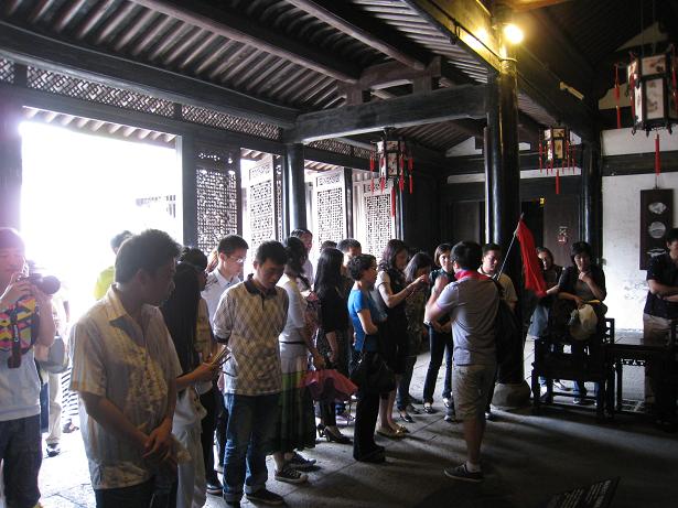 鲁迅祖居及故居所彰显的大户人家的气派似乎还能让我们看到少年“迅哥儿”拥有过的一段无忧岁月,但随着我们移步从百草园到三味书屋,也渐渐看到离开少年时代的乐园的鲁迅,开始从寿镜吾老先生那接受新知识,开始因家道中落而下定决心苦读,在学堂座位上刻下“早”字自勉。最后留洋学医,弃医从文,回国后在这老房子里仍旧写下让当时全国民众醍醐灌顶的文字。大家参观过程中不时交流,驻足欣赏,并且饶有兴致的与导游深入交流,以加深此次红色之旅的内涵和意义。