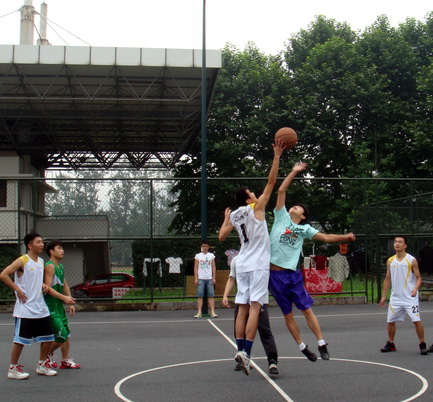 这场对决由于种种原因,让大家等待多时,双方也是摩拳擦掌,跃跃欲试。比赛开始,由金属争抢到了第一个球,前两节,在头哥沈鲁恺的带领下,金属一度将比分拉大至十多分。无机09这边,黄万群同其他队员合理配合,将比分差距缩小,但出现诸多失误。进行到下半时,金属队越打越勇,而无机09转向被动防守,最终金属以53:45拿下了2011年浙大材料系篮球赛总冠军!
