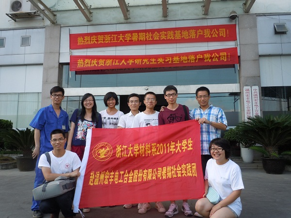 81日,由材料系党委书记王东老师、团委书记徐晗老师带队,浙江大学赴温州宏丰合金公司挂职实习小组开始了他们为期一个月的暑期实践活动。这次的实习活动旨在锻炼研究生、本科生的实干能力,将知识与实践相结合,也为浙江大学与温州企业搭建纽带,促进学校和相关企业之间的交流和合作。