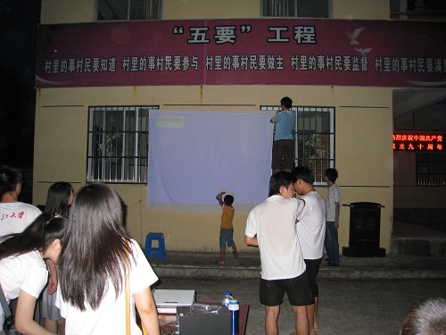 2011731日晚,继浙江大学赴福建省“红色寻访”社会实践团开展了“大学生下乡,寻访红色足迹”的红色之旅之后,队员们又来到了洋墩村,开展了一场别开生面的活动——爱党爱国教育电影放映活动。一方面在身为红色基点村重温红色足迹,与村民朋友们联谊话家常;一方面展现队员们作为新世纪的大学生所拥有的爱国情怀和努力实践投身社会主义大发展建设的决心。