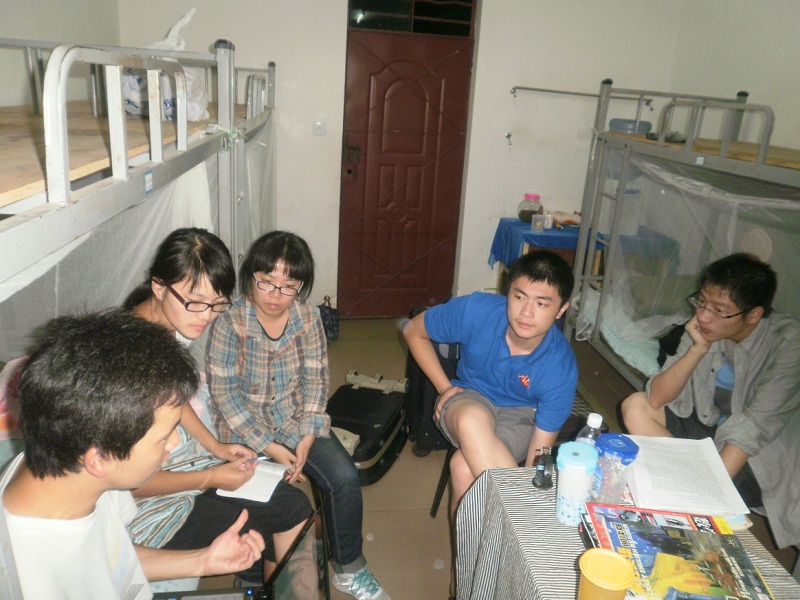 附图:支教队员们在宿舍内一直讨论到深夜