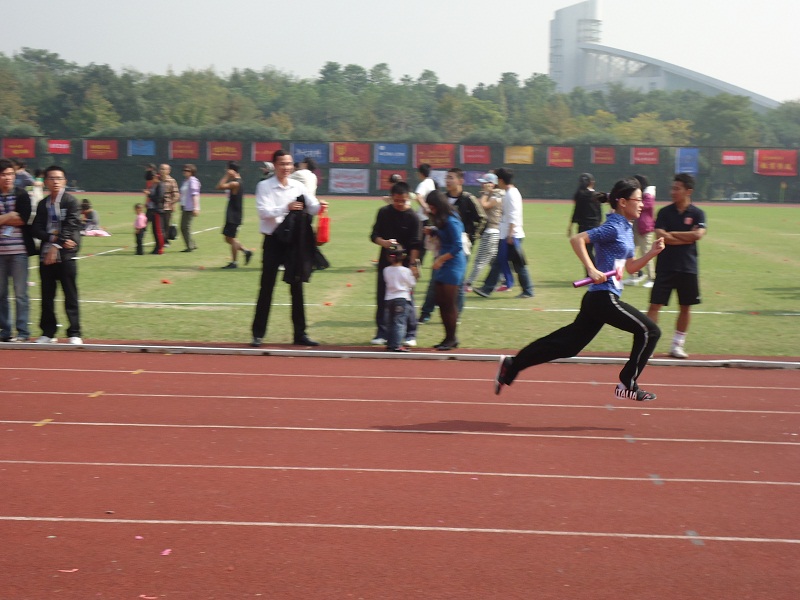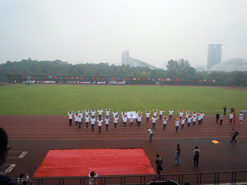 开幕式上,材料系方阵以一个完美的菱形呈现在大家眼前,稳健的步伐和鲜明的服饰相得益彰,方阵行进到主席台时,以风雷之势迅速变为一个双菱形队伍,两个菱形的中间是由四位材料学子展示的系徽,精巧的构思与整齐的行列令人叹为观止。开幕式过后是精彩的赛事,紧张而又欢快的气氛洋溢在操场,运动员们个个凝神蓄锐,争取在自己的项目中取得好成绩。不必说长跑运动员的坚韧不拔、接力赛中的团结一致,也不必说掷铁饼者的运力之巧、跳高运动员的腾空之妙,单是那一百米冲刺时的风驰电掣就足以让我们大声喝彩。总之,运动员们都在为那最后的目标而奋力拼搏,虽然结果有时很残酷,但我们在为成者叫好的同时也应该为败者喝彩,运动的过程本着的是超越自我的宗旨,每一次拼搏都是值得肯定的。