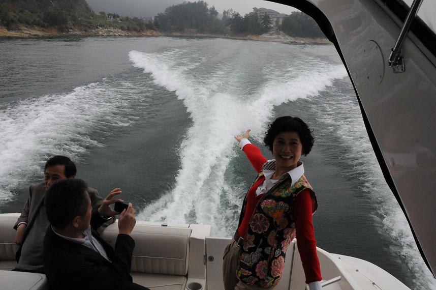 千岛湖,因湖内拥有星罗棋布的1078个岛屿而得名。第二天上午,大家分批乘坐游艇,遨游在宽阔的湖面上,心情飞扬,飘飞的水花更是激起了大家的兴致,照相机的快门不断按下,恨不能将这烟波飘渺中的千岛湖美景悉数收入。