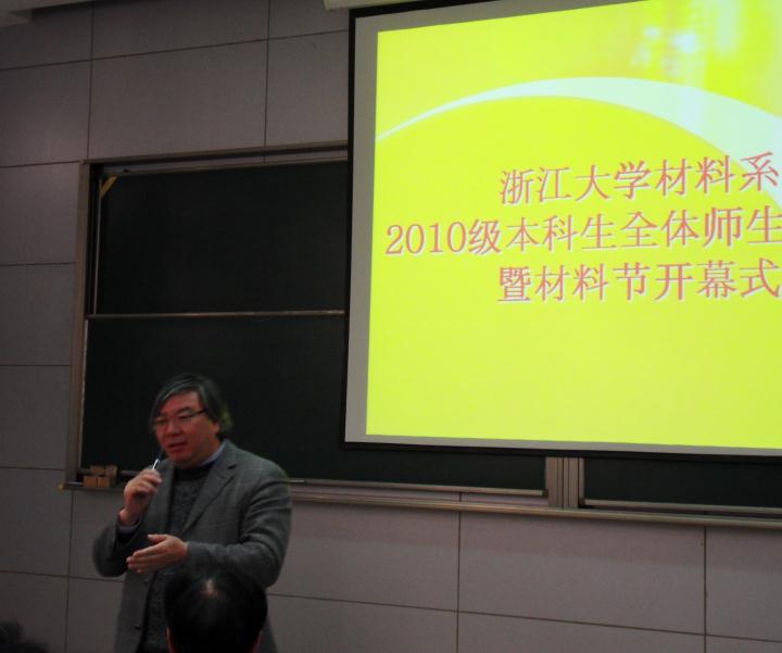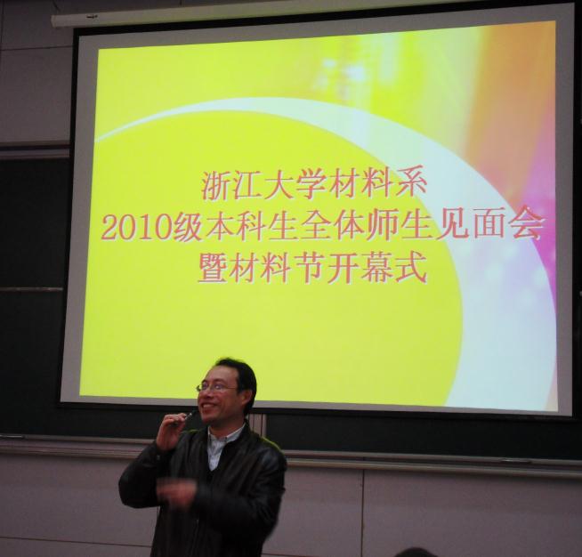 2011年12月3,一个欢庆的日子,2010级材料系全体本科新生和各位老师齐聚一堂,在紫金港西1106举行了第一次师生见面会。材料系系主任叶志镇教授,党委书记王东老师,材料系系副主任、金属材料研究所所长涂江平教授,无机非金属材料研究所所长韩高荣教授,本科教学科应窕老师及10级五位班主任等老师参加了此次见面会,会议由辅导员、系团委副书记徐晗老师主持。