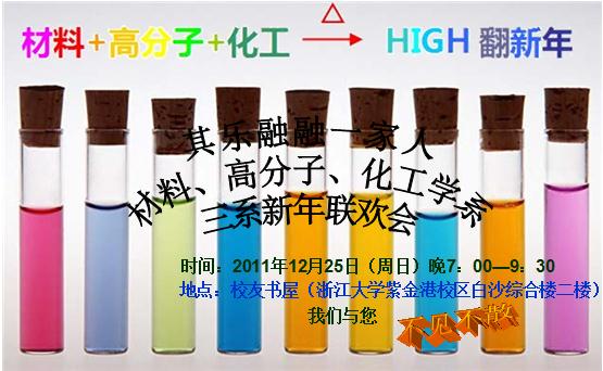 由材料系、高分子系与化工系学生会联合举办的三系新年联欢晚会即将于2011年12月25日周日晚7:00在紫金港校友书屋隆重举行。三系首次共聚一堂庆新年,欢迎各种围观。