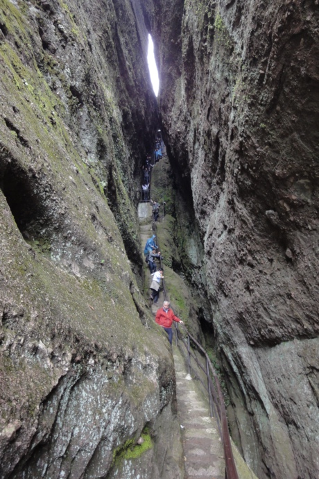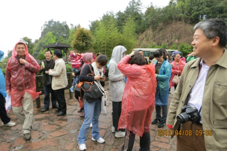 次日一早,大家便开始攀登被列为世界文化遗产的江郎山。虽然天下着雨,但丝毫没有打消大家攀登山峰的热情。