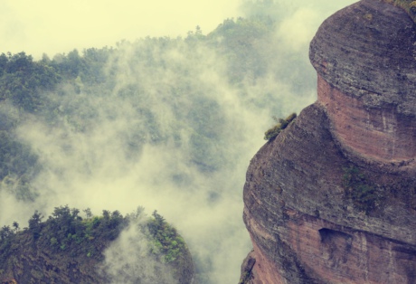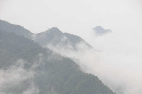 天下着蒙蒙细雨,为攀登山峰增加了难度,但云雾弥漫,烟岚迷乱,凝天、山于一色,融云、峰于一体,仿佛置身仙境。“安得此身生羽翼,与君来往醉烟霞”,无怪唐诗人白居易有此感叹。