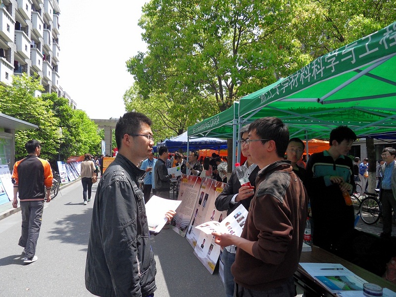 材料系积极参与了本次的专业宣讲会,422日上午,材料系党委书记兼系副主任王东老师、系副主任涂江平老师、教务老师应窕老师,以及2011级班主任乔旭生老师、黄靖云老师,辅导员杨倩、徐晗、张序请等出席了本次咨询会,部分优秀的研究生和本科生学长参与了专业宣传与答疑