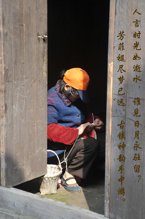 评委意见:慈母手中线,最容易勾起乡愁,门外看人,并没有看扁,而注入了尊重与敬意,只是帽子颜色实在太抢眼。