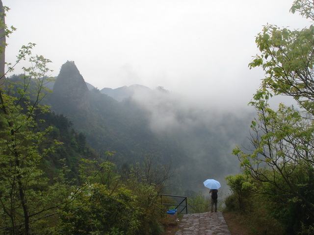 评委意见:持伞者与山尖隔空对话,增强了空间感。雨中的群山更滋润,更惬意。建议裁去左侧半截树。