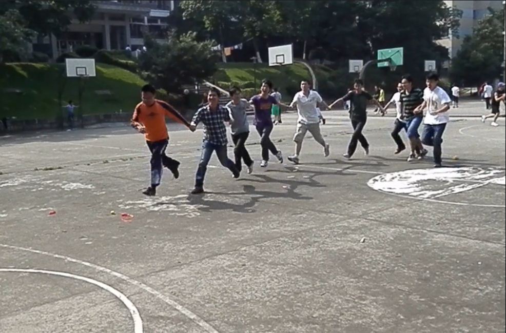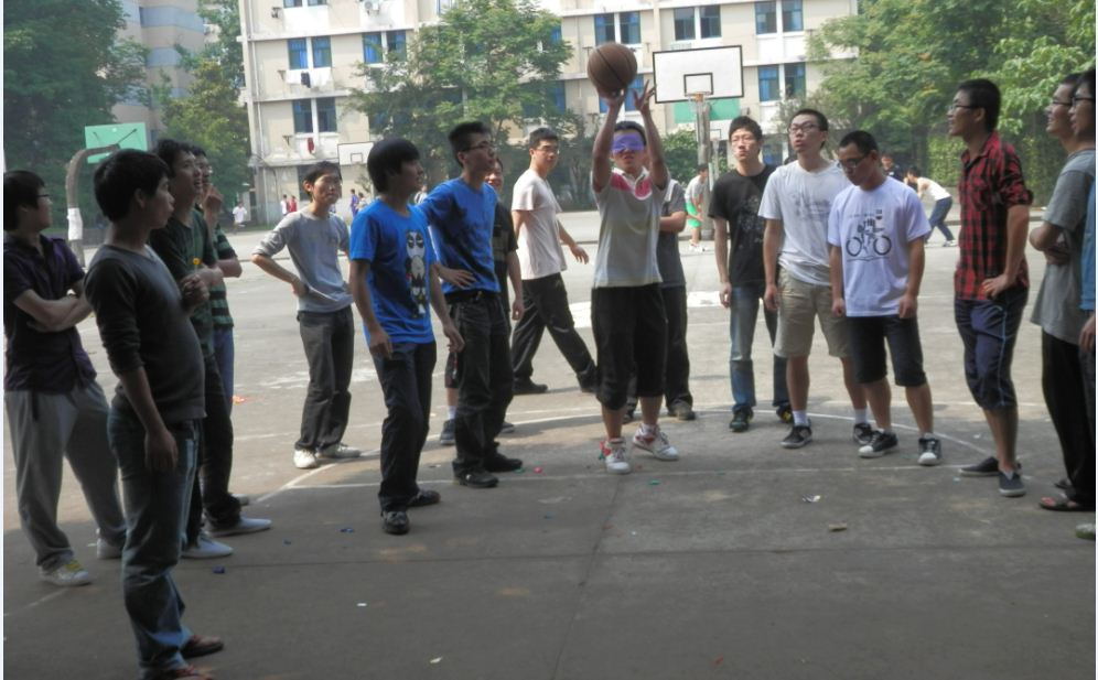 图二 大家为蒙眼投篮的选手指点迷津