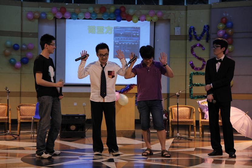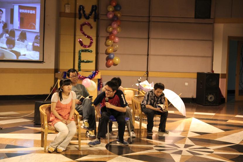 紧接着到了游戏时间,材料系非著名主持人宋涛带大家玩转了《你爱记歌词》,两组参赛同学各有特点,现场观众时而大笑,时而赞叹,别样欢乐。游戏结束后8舍101寝室的四位姑娘表演了《young for you》,演唱的同时用视频与我们分享了她们的寝室生活和酸甜苦辣。材料0802的同学为我们带来了音乐剧《那些年》,讲述了一个从大二到大四日常生活中的“深刻”爱情故事,十几分钟的节目刻画了寝室里兄弟间的情谊、搞科研的重要性与生活中的点点欢乐。张毅俊同学表演了琵琶器乐《彝族舞曲》,时而蜻蜓点水、时而雨打芭蕉,热闹的现场一下安静了下来沉浸在彝乡的旋律之中。