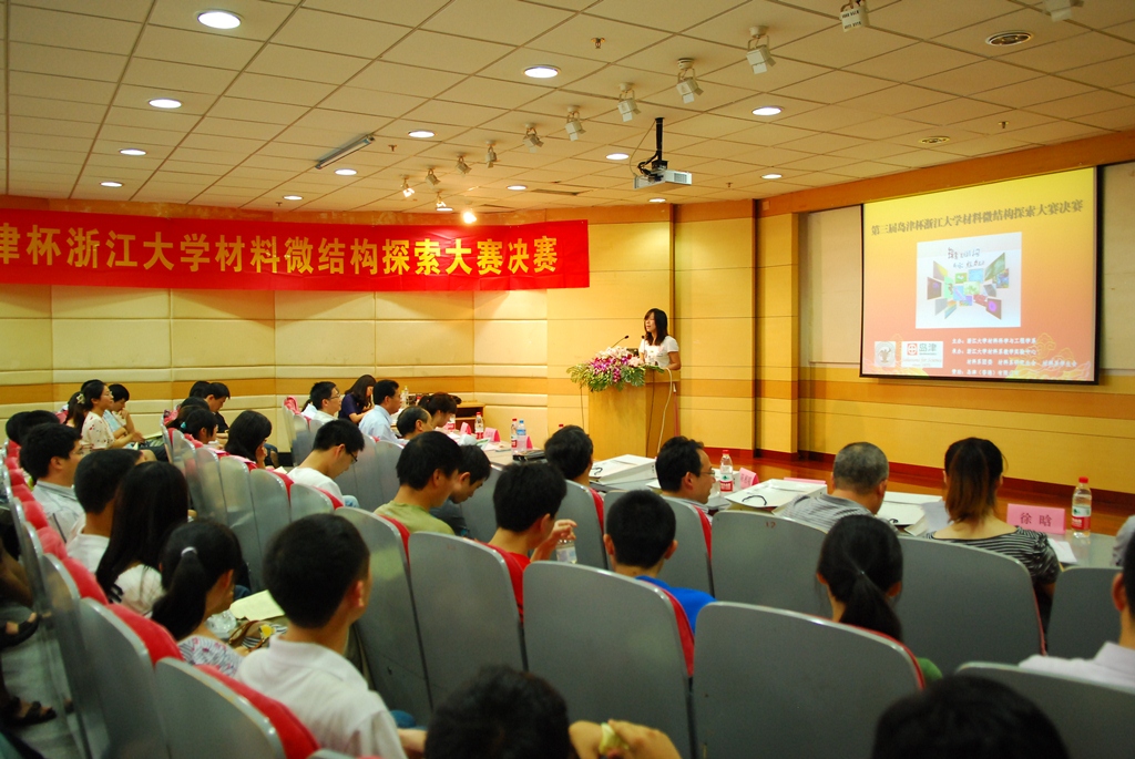 2012621下午,第三届岛津杯浙江大学材料系微结构探索大赛决赛答辩在浙江大学玉泉校区永谦活动中心二楼报告厅顺利举行。中国科学院院士、材料系教授张泽,中国科学报大学周刊主编钟华,材料系系主任叶志镇,系党委书记兼系副主任王东,系副主任翁文剑,材微所所长陈湘明,无机所所长韩高荣,系团委副书记徐晗等出席了此次大赛并担任嘉宾评委。大赛由材料系研究生会主席姜颖主持。