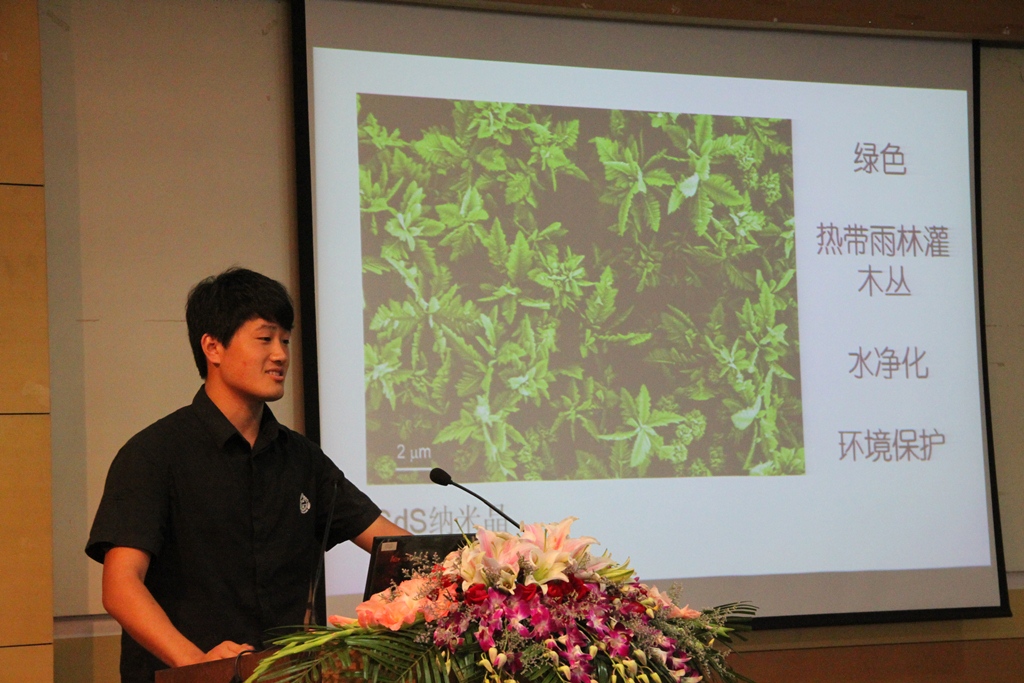 图四 一等奖获得者厉王秋展示作品《热带雨林灌木丛——CdS可见光催化处理有机污染物》