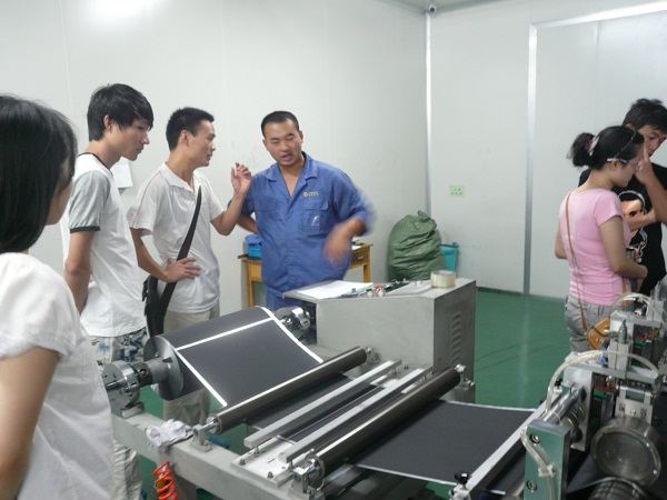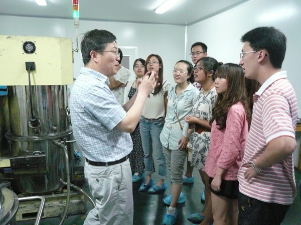 在吕副总经理的带领下,实践团参观了锂离子电池生产工序的各个车间,了解了车间的整个运作流程,并就实验室科研与实际生产的差异问题与相关工程师进行交流。通过参观实践,大家对电池生产工艺及设备有了大致的了解,对电池的产业化生产有了更加清晰的认识。不同于在实验室的理论研究探索,公司的产业化生产需要考虑更多的因素:成本、成品率、效益等。因此,科研工作者要有结合理论研究和产业化链条的意识,学以致用,多做一些有望产业化的研究工作。生产线上的每一步工艺都需要严格的质量和检测控制,不能出丝毫差错。团队成员赵旭阳激动的说:“在我们的实验科研中,如果能时刻保持这种求是严谨的态度,必定能得到更好的研究成果!”