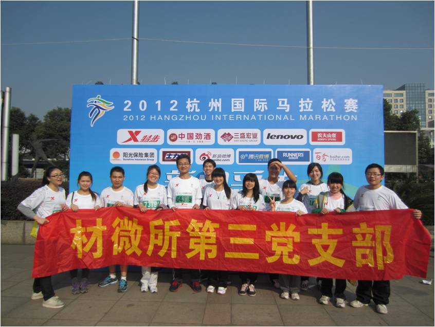 在此欢欣鼓舞的大环境下,最美杭城国际马拉松赛如火如荼拉开帷幕,杭州国际马拉松赛始于1987年,2012杭州国际马拉松赛于2012.11.18早8点整在杭州黄龙体育中心开赛,吸引了来自37个国家和地区的两万余名马拉松运动员及爱好者报名参赛。我们材微所第三党支部响应党的号召,意气分发,共同报名参与这一盛大意义非凡的活动,集体报名6.8km小马拉松,共同感受奔跑的力量和坚持的意义、青春的活力。