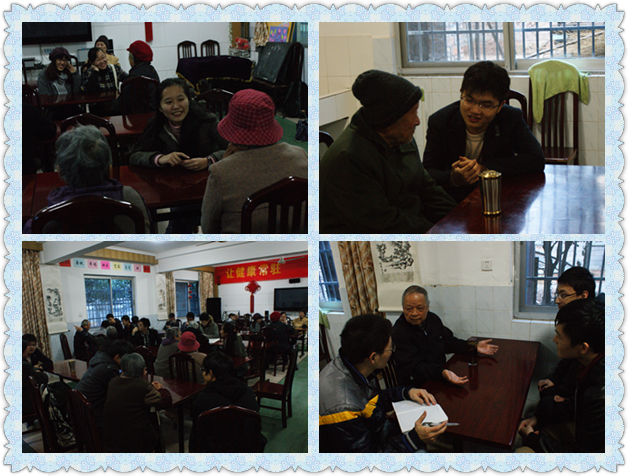 为践行十八大精神,勇担时代重任,20121123日下午1003团支部15名同学赴古荡老人公寓进行“青春号手”主题社会实践活动。