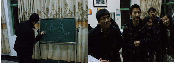 2012年12月3日晚,材料1003全体同学齐聚26舍学生活动室,共庆班团组建一周年。冬日的寒意丝毫不能影响同学们的热情,喝彩声、惊呼声、欢笑声交织出一曲最美的欢乐颂。