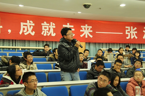 接下来是讲座的第二个环节,问答环节。此时,场面愈发热烈起来,同学们都想借这次难得的机会说出心中的困惑,争先恐后地发言。其中涉及的问题十分广泛,有关于个人学习方面的,有关于材料专业方面的,也有关于材料就业方面的,张泽院士都一一进行了亲切而认真的回答;而他的回答往往能够给人一种醍醐灌顶的感觉,引起了一阵阵掌声。