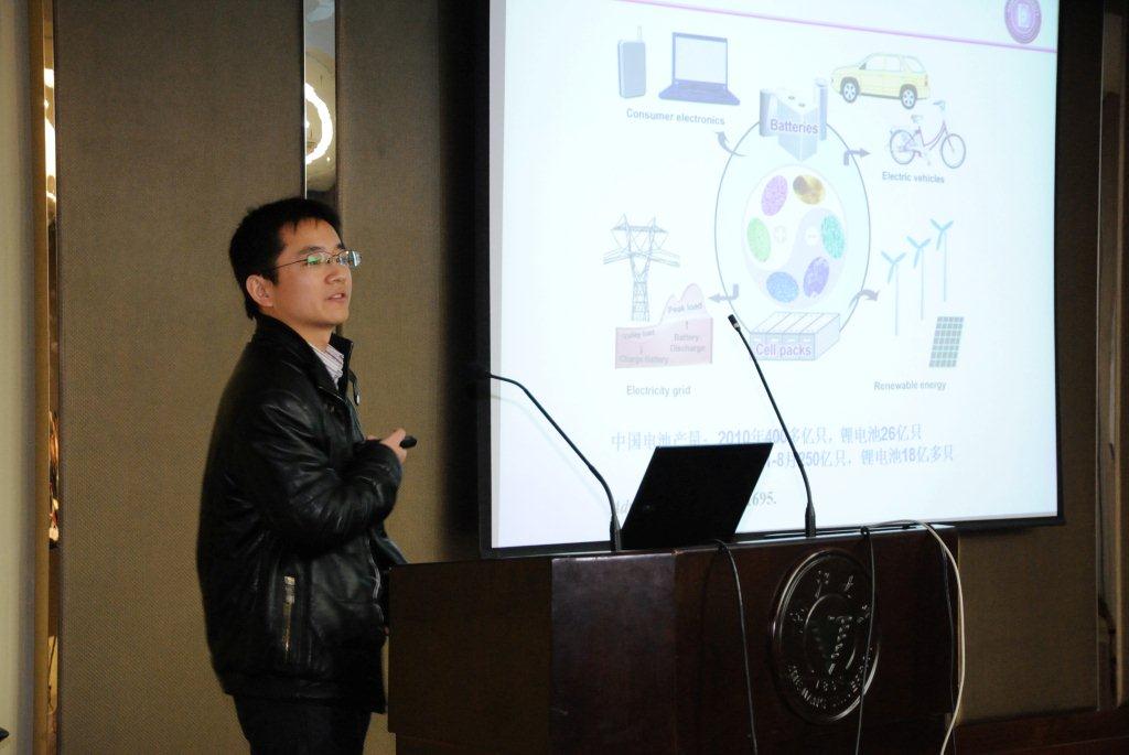第二位出场的是南开大学的程方益副教授,程教授从提出科学问题,进行文献调研,寻找解决办法,实验确认以及理论计算验证的主线,重点介绍了锰氧化物功能纳米材料在锂离子电池和金属空气电池领域的应用。值得一提的是,程方益副教授是一名“80后”,刚刚30岁,已在Nature Chem., J. Am. Chem. Soc., Adv. Mater.等国际著名学术期刊上发表论文60余篇,他引1850余次,引起在座“80后”、“90后”师生的阵阵掌声。