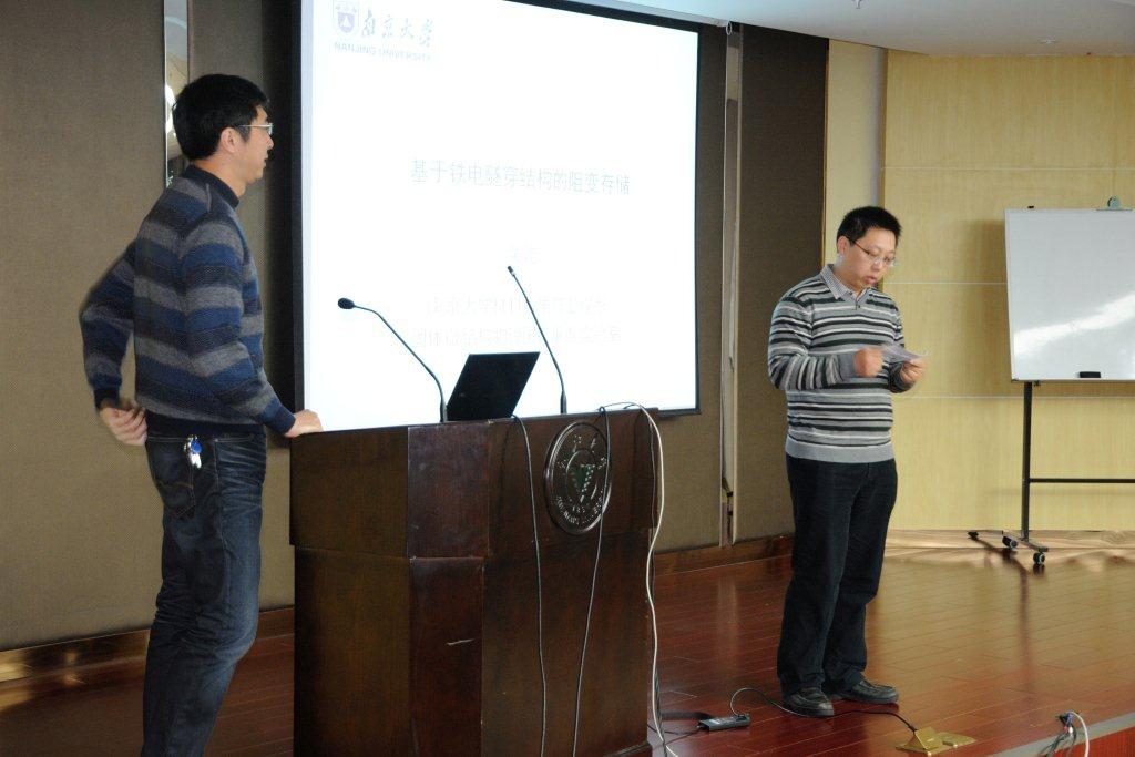 第三位出场的是南京大学的吴迪教授,其报告的题目是“基于铁电隧穿结构的阻变存储”。吴迪教授作为国内最年轻的973计划项目首席科学家,用非常通俗易懂的话语,为大家介绍了金属/超薄铁电薄膜/半导体隧穿结构,其铁电极化翻转可以同时调制隧穿势垒的高度和宽度,获得大于104的电阻开关比,为非挥发铁电存储提供了一种新的方案。