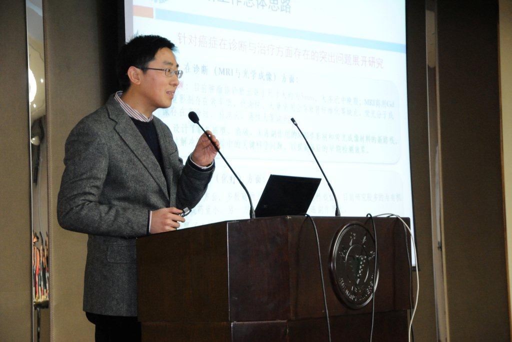 最后一位是华东理工大学李永生教授,李教授研究领域是生物功能材料,其报告题目为“纳米复合颗粒的可控制备及其生物应用特性研究”,重点介绍了一些纳米核壳结构材料在癌症诊断和治疗方面的最新研究进展,并展望了多功能纳米复合颗粒在荧光与MR成像、药物传输和光热治疗等方面具有良好的应用前景。