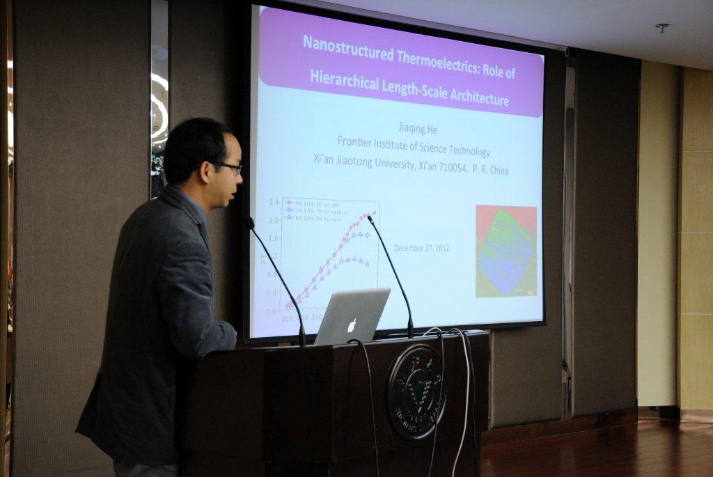 接下来由四位教授分别结合自己的研究,为材料系师生做了精彩的报告。首先是西安交通大学何佳清教授为我们带来的题为Nanostructured Thermoelectrics: Role of Hierarchical Length-Scale Architecture”的报告。何教授主要致力于通过引入纳米结构,实现了在不影响热电材料的高功率因子的同时,大大降低其晶格的热导率,从而提升了热电材料的整体性能。