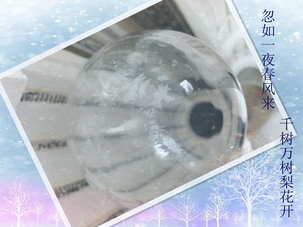 本人做的研究方向是无机类富勒烯MoS2的合成及其表征,通过流化气相法合成。实验在特制石英反应器中进行,需要在高温(600~700)下使MoO3升华,成为气相,然后与其他反应气体相互反应生成富勒烯结构的MoS2。实验初期我研究了一下MoO3的升华,实验结束后,发现在直径100mm、上端封闭的石英反应器内壁有类似于雪花状的MoO3结晶,非常漂亮!