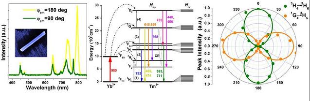 稀土离子掺杂上转换发光作为一种反斯托克斯光学现象,被发现以来受到了人们的普遍关注。近年来,由于纳米材料制备技术的迅速发展,该领域的研究进一步向纵深推进,应用研究也已拓展至太阳能利用、生物显微成像、三维立体显示等众多重要领域。但是迄今为止人们比较关注纳米颗粒群体的统计发光行为,而对于单颗纳米颗粒的发光特性研究甚少,尚没有稀土离子掺杂纳米颗粒的上转换发光的偏振特性的研究。