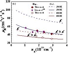 1ZrNiSn中各散射机制声子弛豫时间          2Mg2Si0.45Sn0.55的迁移率与载流子浓度