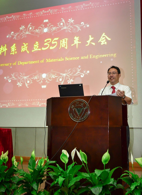 三十五年风雨洗礼薪火相传,三十五载春华秋实桃李芬芳。在随后的大会第二议程中,材料系创始人、92岁高龄的王启东先生发表讲话,他深情回忆了创办材料系的那段艰苦历程,感慨如今的材料系科学成就硕果累累、优秀学子桃李芬芳,他希望,材料人一定要刻苦攻关、上下求索,要志存高远、勇于创新,在实现中国梦的今天,携手并进,共同实现自己的材料梦。