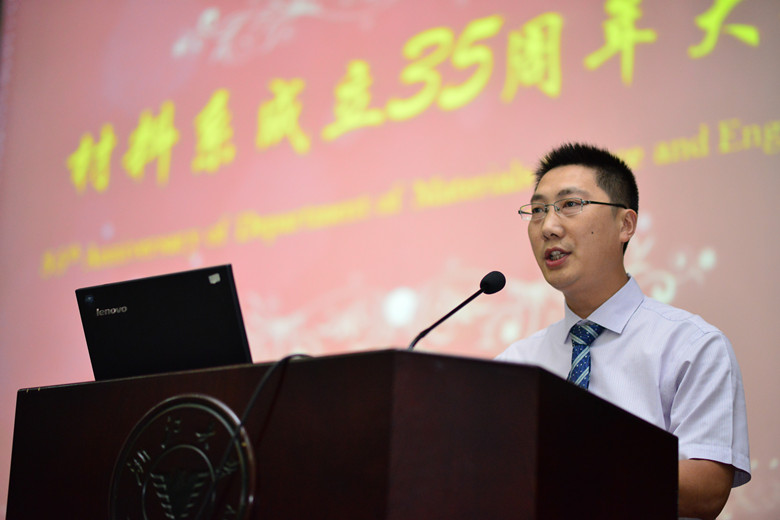 青年教师代表刘永锋在发言中表达了对学校、学系的强烈归属感。他叙述了自己进入材料系以来的求学历程以及后来的教师经历,感谢母系给予的培养和关爱,他将与所有青年教师一起,继续弘扬前辈的优良传统,孜孜以求、永不言倦地去承载建设世界一流学科的使命。