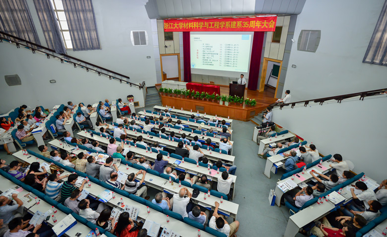浙江大学材料系成立三十五周年总结大会于2013年6月23日上午在浙江大学玉泉校区教七影视厅成功举行。材料系创始人王启东先生、材料系历任系主任以及来自全国各地的系友与材料系师生300余人参与了大会,共话三十五年发展之光辉历程,齐谋未来学科之美好前景。
