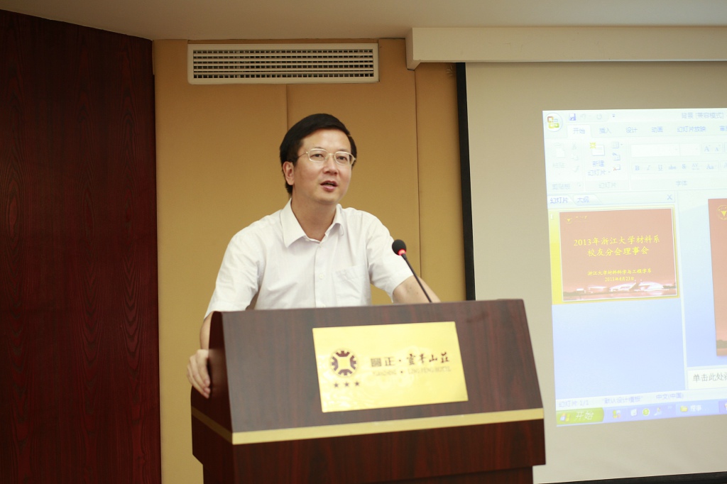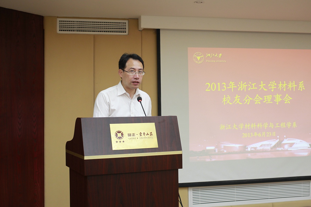 2013年6月23日上午,“2013年材料科学与工程学系校友分会理事会”在杭州灵峰山庄顺利召开。来自全国各地四十余位理事参加了会议,出席本次会议的领导有浙江大学党委常务副书记邹晓东、浙江大学宣传部部长沈文华、材料系系主任叶志镇、副系主任翁文剑、涂江平等。会议由浙江大学材料系党委书记王东主持。