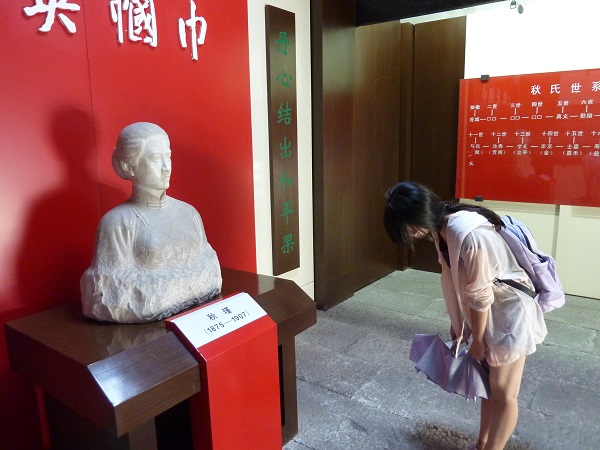 2013年7月10号,材料系红色寻访团队的同学们结合“中国梦”主题参观了位于浙江省绍兴市“秋瑾故居”,故居包括客堂、会客室、餐厅、卧室,秋瑾曾在这里接待同志,秘密商议起义事宜。 即使顶着火辣辣的太阳,同学们对秋瑾的敬仰之情丝毫未减。在两间简陋但有序的陈列室内,我们清楚看到秋瑾璀璨发亮的浓缩一生,她的时代责任感,她的伟大功绩,她的创造创新。那句“身未得,男儿列;心却比,男儿烈”恰到好处地形容了秋瑾是一位在封建到现代女性过渡年代的典型,敢于走在时代前列,打破常规走出家门为国奉献,不畏流言的气魄着实让人感到震撼与激励。 队员向秋瑾烈士致敬 参观时间虽短,但我们感受到的远多于预期,在参观过程中,我们可以很清楚地看到,虽然秋瑾一家在当地条件已算优越,但与我们现代住房比较依然简陋。只有简单的笔墨纸砚,缺少我们习以为常并且不可缺少的硬件,电扇电视,更别说空调电脑,而在如此条件下依然能做一位影响时代启示后人的伟人,我们这一代在这般优越的硬件和软件条件下,更要向秋瑾同志学习,时刻谨记社会和自身的“中国梦”,利用当代优势更多地为社会奉献,为中国崛起而奋斗。
