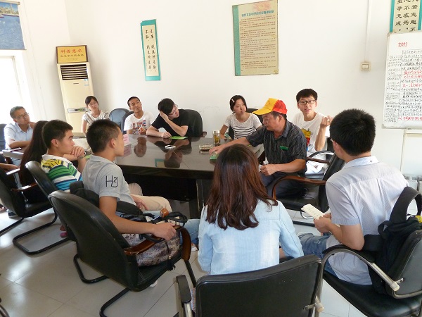 除此之外,队员们还与大学生村官代表王过江进行了简短的访谈。作为大学生村官的一员,他已经在锁石村工作了两年多。提到自己的工作经历,王过江表示,他起初也像大多数大学毕业生一样,对职业及发展城市迷茫;但他想通过务实的工作来实现自己的梦想,这个想法使他选择来到基层工作。他说两年的基层工作使自己从看似琐碎的基层工作中体会到了中国梦的真正内涵,作为一名当代大学生,应树立正确的择业、就业观,脚踏实地,将个人梦想与国家的复兴梦紧密结合起来。基层工作锻炼了他,给他的双眸染上一股子自信,使他的言谈举止成熟而稳重。他的所见所闻使他坚信祖国正不断发展着,他于未来的期许不是架在空中的梦,而是可以通过自己的努力而达成的梦。