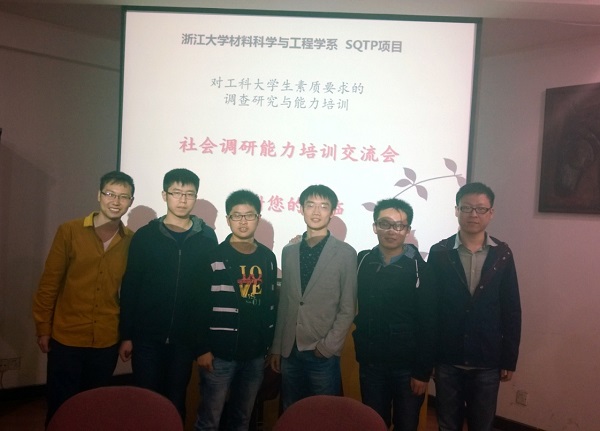 为进一步推进浙江大学学生素质训练计划(SQTP),响应校方“培养知识、能力、素质俱佳的具有国际视野的优秀人才”号召,材料科学与工程学系SQTP团队承办了“工科生社会调研能力培训交流会”,活动于11月3日在玉泉校区曹光彪大楼324会议室顺利进行,并取得了圆满成功。